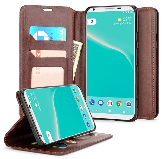 Here’s another premium wallet case with stand drops, bumps, and tumbles. It is 100% brand new flip and fold wallet case for Pixel 2 XL. This convenient wallet design case let you hold credit cards, IDs, and cash securely in the separate slot on the case. Comfortable hand feeling with Slim and lightweight. It has the magnetic clip to keep your stuff safe with a snap lock button. It perfectly fits on your Google Pixel 2 XL protect the larger LCD screen from impacts and scratches