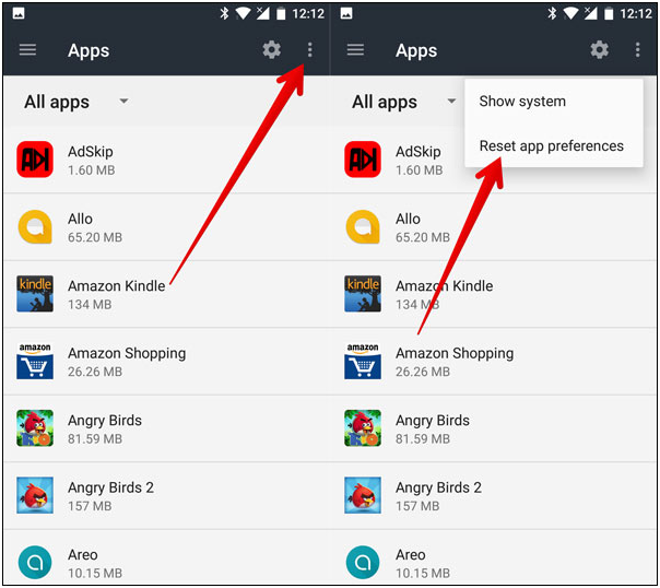 - Go to Settings> Apps> Tap an onMenu icon and then “Reset App Preferences.”
