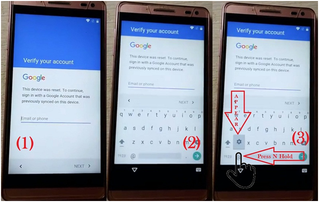 In this step select the email or phone entry option on the screen as you can see in the screenshot when you choose this option the keyboard will appear and at the keyboard press and hold on the “@” key so you will get the setting icon.