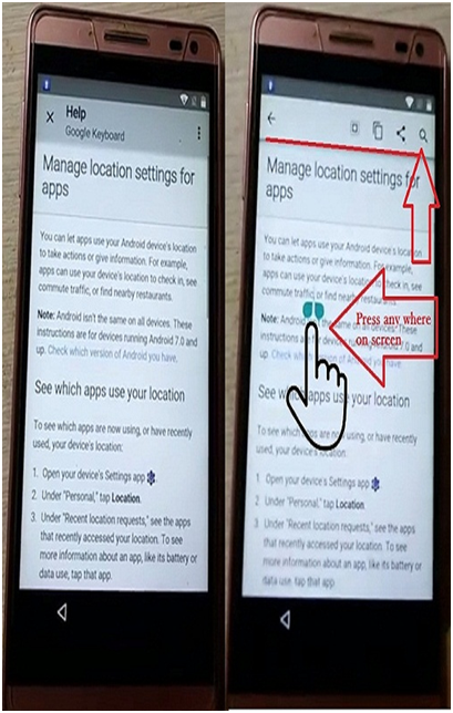 In this step need to press anywhere on the screen as we normally do in every android device to copy or paste for the text. Now you can see the search bar appears on the top of the screen click on it.