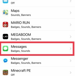1#. Go to the Settings. Then tap on Notifications and select Messages.
