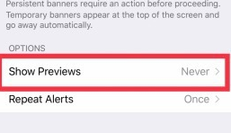 2#. Under Options, tap Show Previews and tap Never.