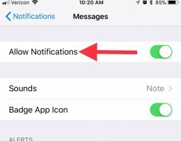 In the last option is to toggle Allow Notifications off. You will need to remember to open your Messages app frequently to see if you have conventional any new messages because your phone will no longer alert you in any way.