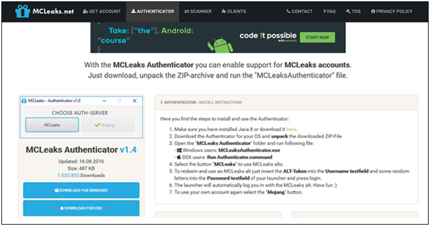 Step 2: Download the McLeaks authenticator. Remember there are two different links available on this site, one for Windows and the other is for Mac, so select accordingly.