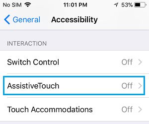 Step 4: Now simply Scroll down and Tap on AssistiveTouch option.