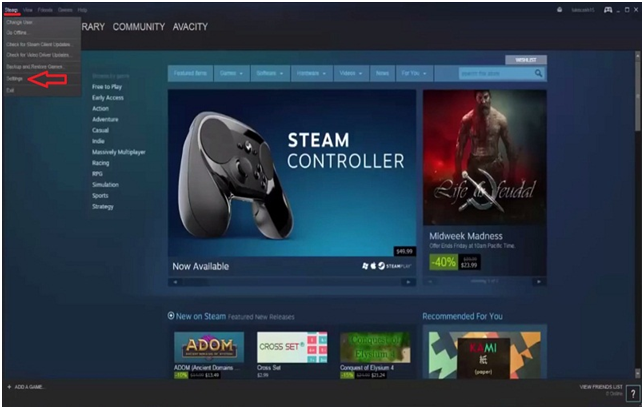 Once you back into your main account, you will go to do the same process as you did in your friend and family account. Go to the steam then go to settings; make sure that the steam guard is activated.