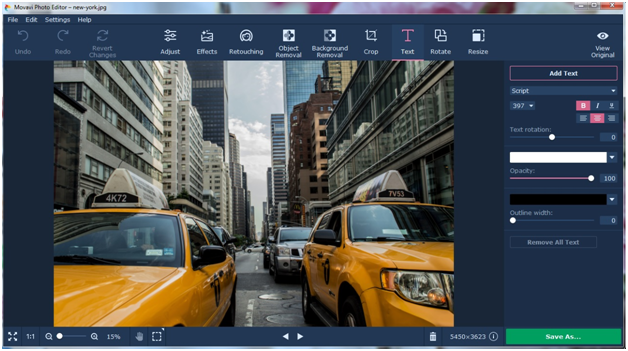Adding text to photos is a creative way to enhance their appearance. It is useful for creating nice captions for photos and users have the option to try different font styles, colors, and sizes. One outstanding attribute of Movavi Photo Editor is that it can recognize any font style that you’ve previously installed on your computer.