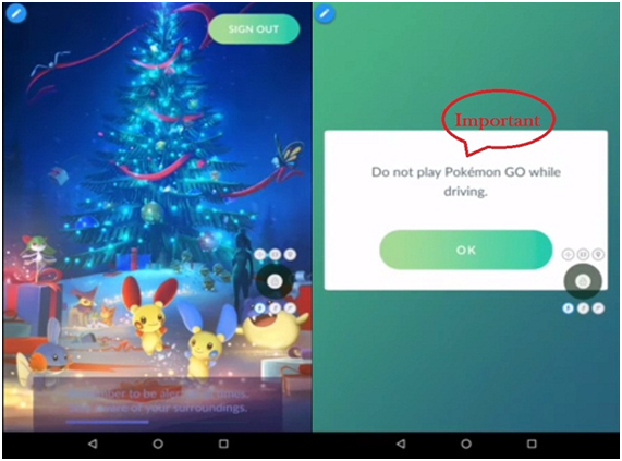 Here you can see the game start and shows the necessary notification that doesn’t play Pokémon Go while driving, there is an ok button on this page as you can see the screen shot so press the ok button.