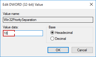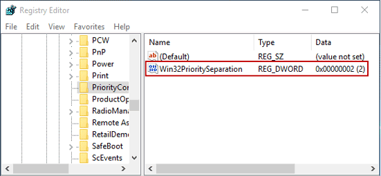 Step 5: after, Change the value of Win32PrioritySeparation to make foreground apps well.