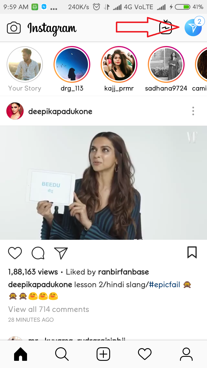 Step #3: Now tap on an arrow at the top right corner to start direct message.