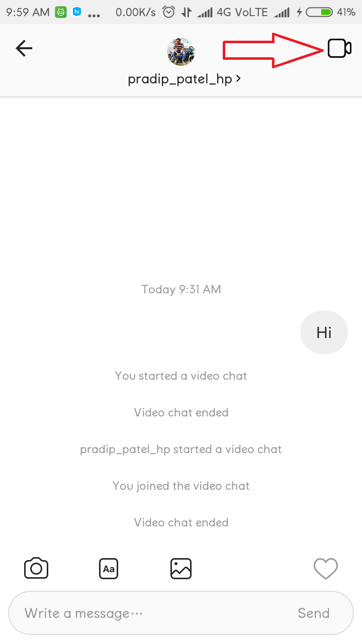Step #4: After you open a direct message, search or select person you want to video call and then tap on new video call icon at the top right corner to start a video chat.